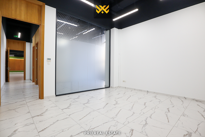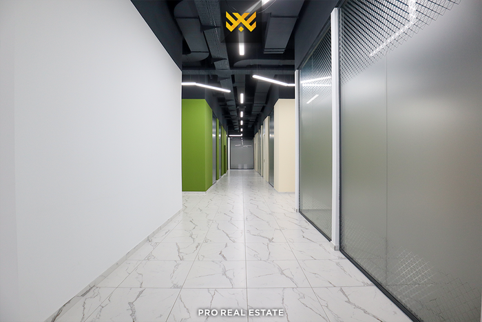 Im Inneren des Objekts gibt es Trennwände aus Gipskarton und Glas, und es ist mit Belüftung und Klimaanlage ausgestattet.