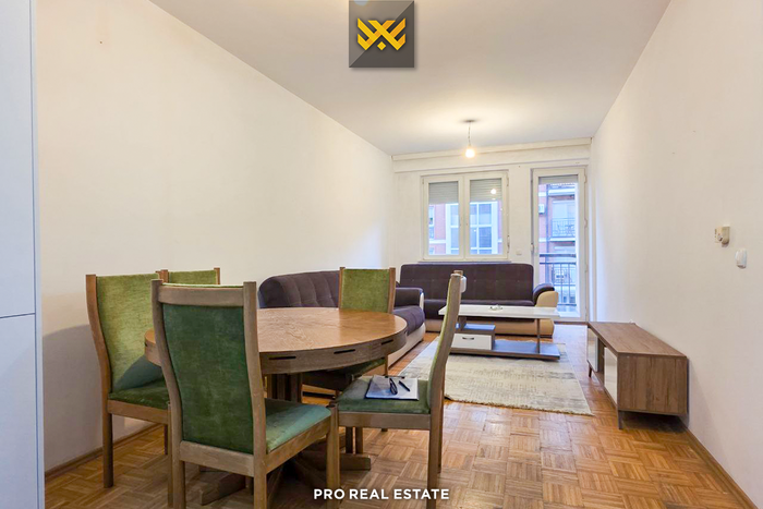 Die Wohnung hat eine Ausrichtung nach Westen und Süden und verfügt über folgende Raumaufteilung: Wohnzimmer, Küche, zwei Schlafzimmer, ein Badezimmer und einen Balkon.