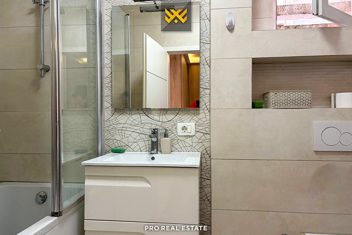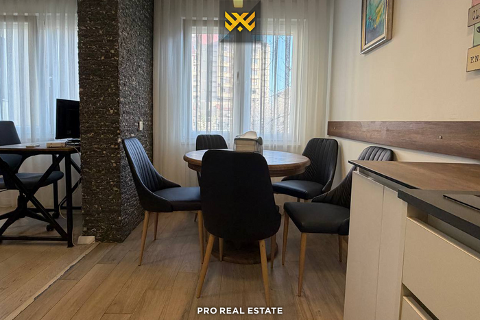 Zur Miete angeboten wird eine Wohnung mit einer Fläche von 50m², gelegen in Qafa, in der Straße "Fehmi Agani", in der Nähe des Restaurants "Princesha Gresa".