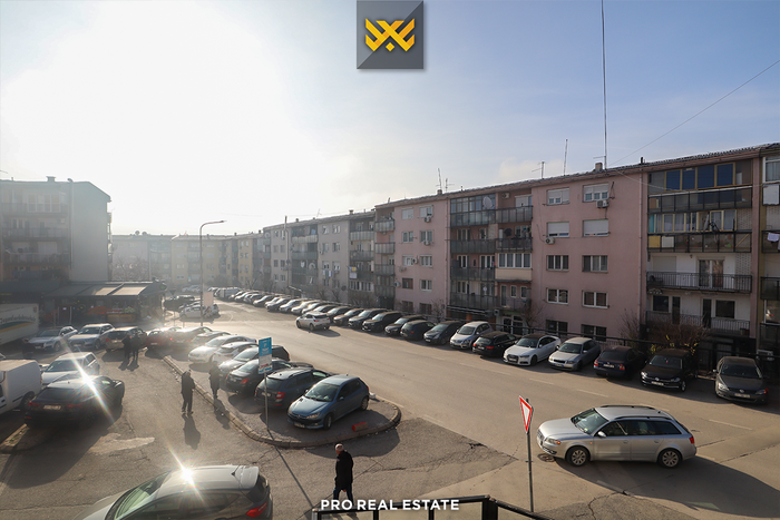 Die Wohnung hat eine Ausrichtung nach Westen und Süden und verfügt über folgende Anordnung der Innenräume: drei nutzbare Arbeitsräume, Küche, Badezimmer und Balkon.