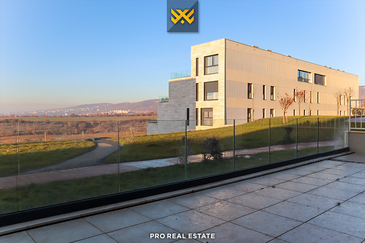 Zum Verkauf steht eine Terrassenwohnung mit einer Wohnfläche von 154 m² und einer Terrasse mit einer Fläche von 81,5 m², ausgestattet mit einem Besitzblatt, gelegen im Viertel Marigona Hill.