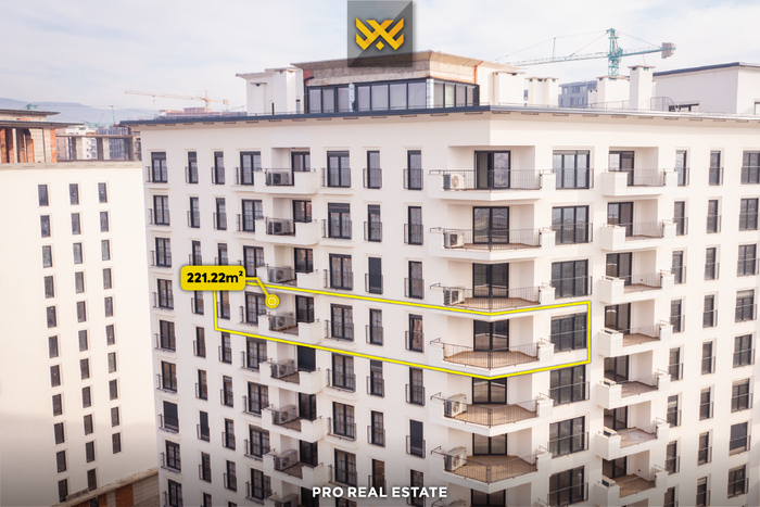 Zum Verkauf steht eine Wohnung mit einer Fläche von 221,22 m², gelegen in Prishtina e Re, in der Straße „Holger Petersen“, im Komplex Albanica Homes, gebaut von Invest Group.