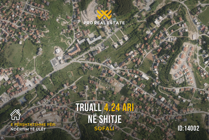 Zum Verkauf steht ein Grundstück mit einer Fläche von 4,24 Ar in Sofali, nahe dem Gërmia-Park.