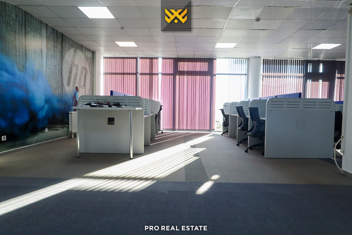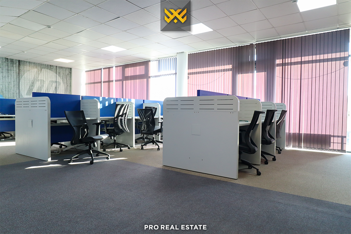 Die Immobilie hat eine Ausrichtung nach Osten, Westen und Süden und bietet den ganzen Tag über natürliches Licht. Sie ist auf einem Untergeschoss und einem Obergeschoss organisiert, mit folgender Anordnung der Innenräume: zwei große Arbeitsräume (Open Space), ein funktionaler und leicht anpassbarer Raum für verschiedene Arten von Geschäften wie Büros, Verwaltung oder sogar Banken, sowie acht Toiletten.
