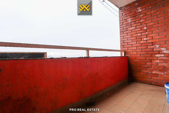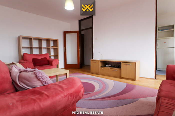 Die Wohnung hat eine Südausrichtung und folgende Anordnung der Innenräume: Wohnzimmer, Küche, ein Schlafzimmer, ein Badezimmer und einen Balkon.