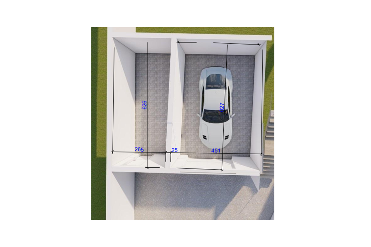 Das Haus ist nach Osten ausgerichtet und bietet somit den ganzen Tag über natürliches Licht in allen Räumen. Es ist in ein Untergeschoss, ein Erdgeschoss und zwei Etagen unterteilt, mit folgender Anordnung der Innenräume: