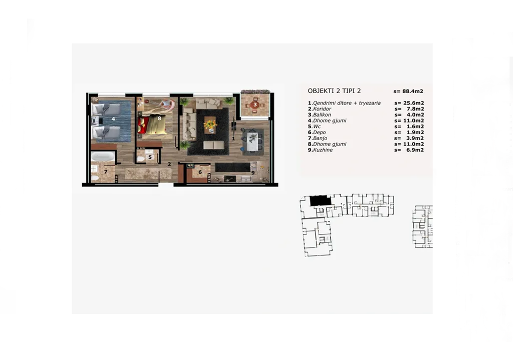 | 2 Dhoma të fjetjes