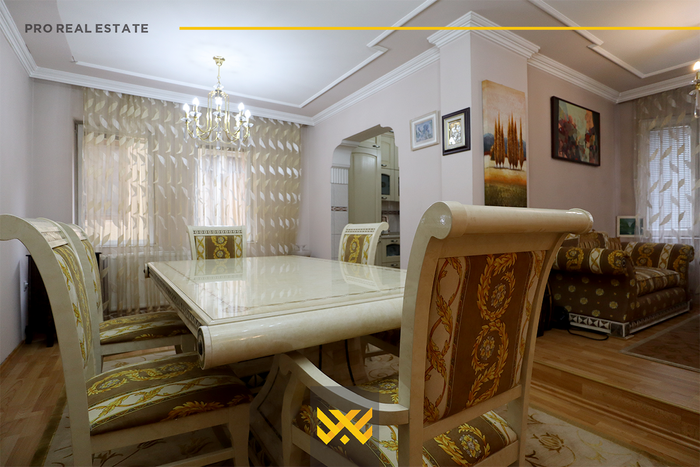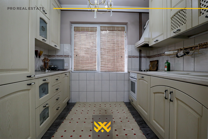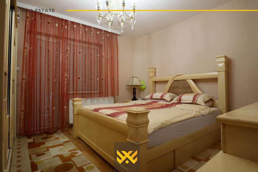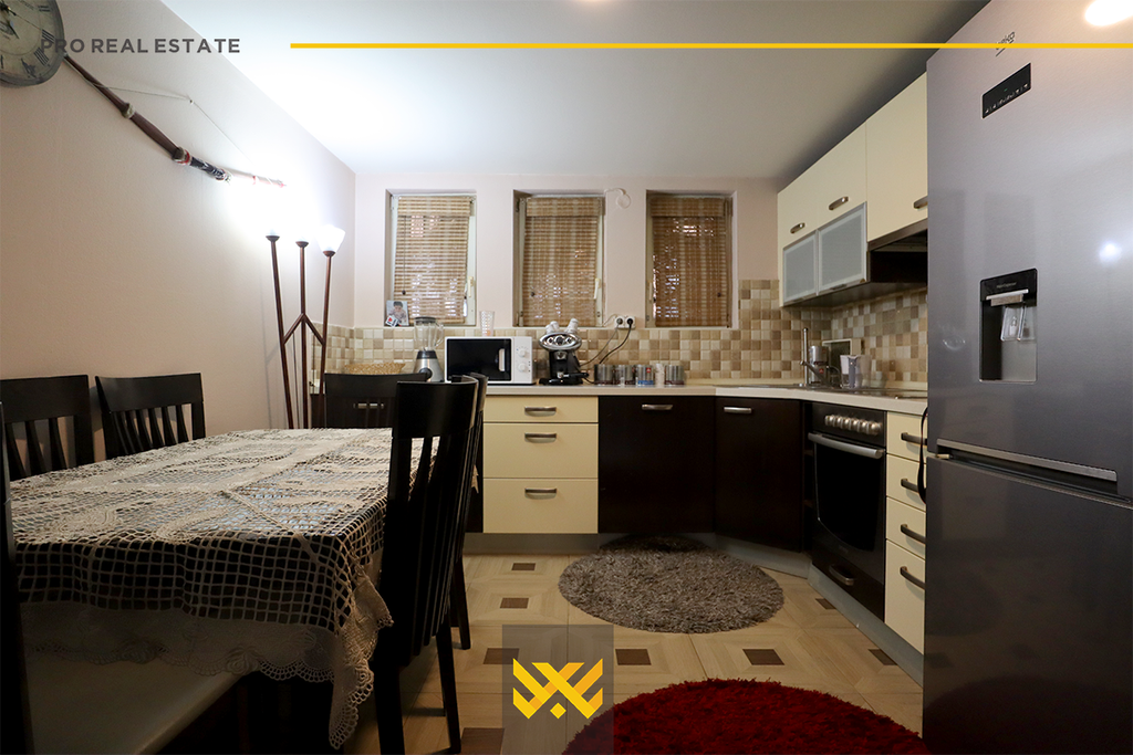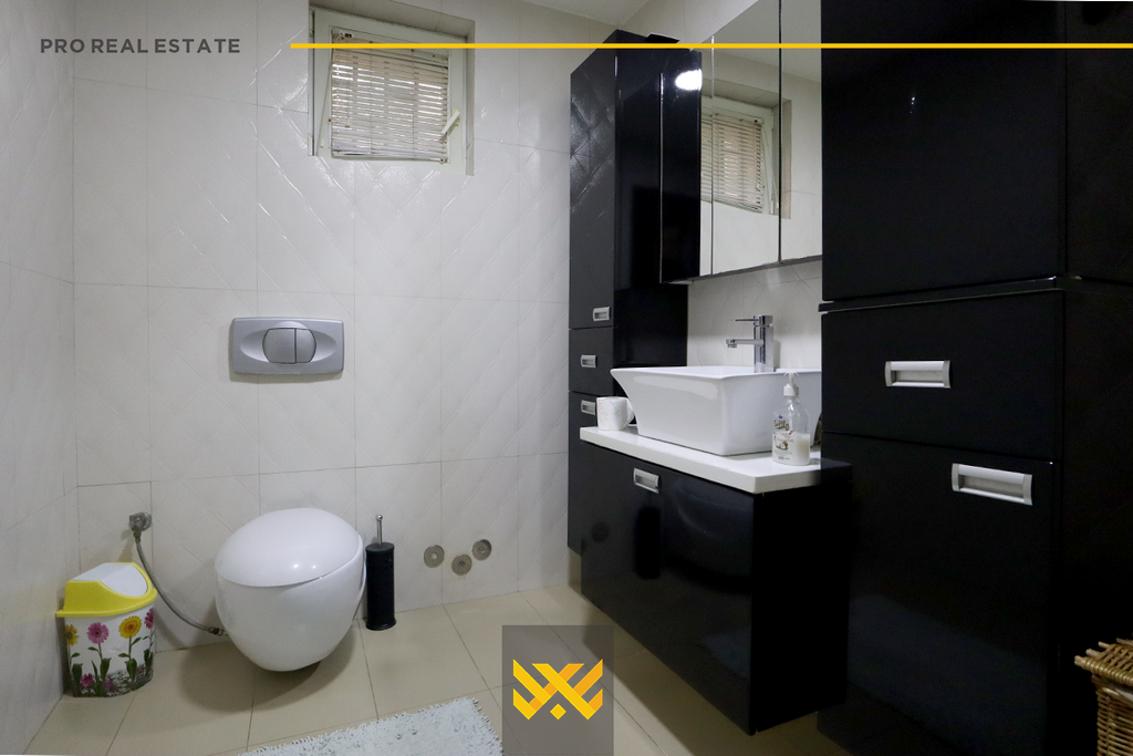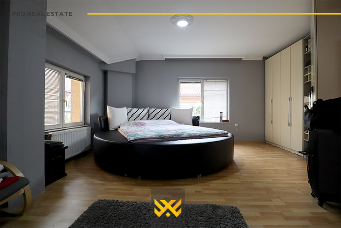 Shtëpia me sipërfaqe 380m² ndodhet në Qendër. Është e ndarë në tre kate, ka kopsht dhe vendparkim për tre vetura. Ka hapësira tejet të shfrytëzueshme e të mobiluara tërësisht. Ka sistem të ngrohjes me energji elektrike me pelet dhe dru, gjithashtu ka dhe kamin. Përparësitë e shtëpisë jane afërsia me shkollën fillore “Elena Gjika”, parkun e qytetit dhe Sheshin prej vetëm 10 minuta.