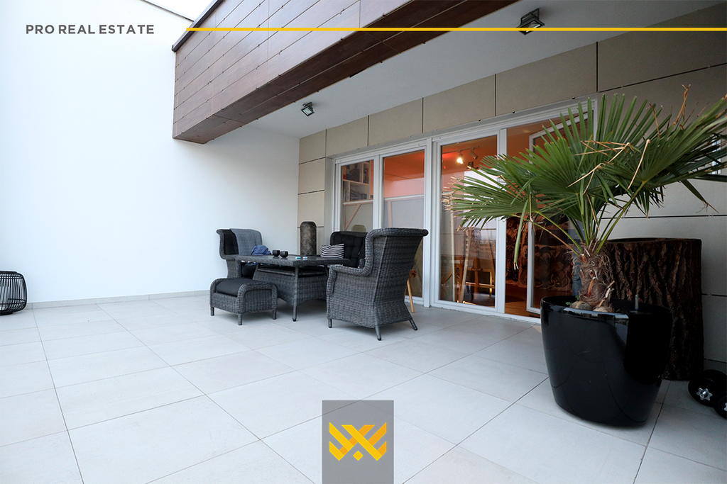 Penthouse me sipërfaqe prej 160m² dhe terasë 40m² ndodhet në lagjen Pejton në kompleksin PRIME Group. Me lokacion tejet të përshtatshëm për banim si dhe një pamje të hapur drejt qytetit penthouse ka orientim nga lindja. Është tërësisht e mobiluar me shije të stilit modern të cilat ofrojnë komoditet dhe rehati. Ka sistem të ngrohjes me Termokos, ashensorë si dhe vendparkim të mjaftueshëm për banorë.