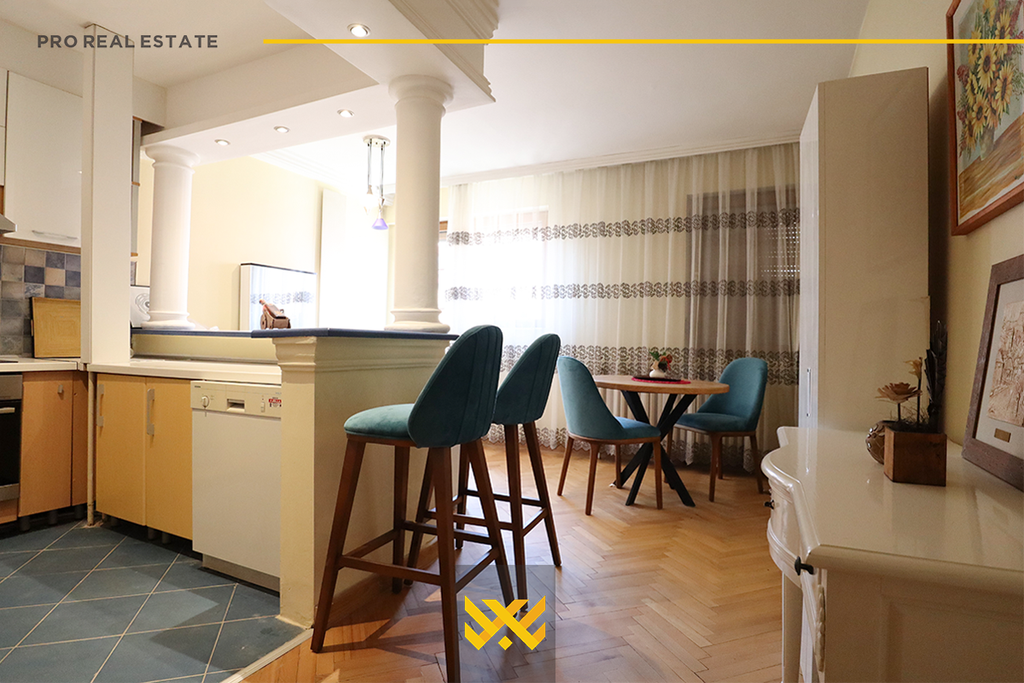 Banesa me sipërfaqe 60m² ndodhet te Santea, në Dardani, afër Albi Market. Është tërësisht e mobiluar, e kombinuar me stil të veçantë dhe në mënyrë shumë elegante, me mobilje të nuancave neutrale, që i japin banesës një pamje shumë të veçantë dhe elegante, me renditje të kësaj mënyre: qëndrimin ditor, kuzhinën me tryezari, një dhomë të gjumit, një banjo dhe një ballkon. Sistemin e ngrohjes e ka me energji elektrike, si dhe ndërtesa ku ndodhet banesa është e pajisur me ashensor dhe ka hapësirë parkingu të mjaftueshme. Ndodhet në një ndër lagjet më të kërkuara të kryeqytetit, pasi ka frekuentim të lartë dhe në afërsi ka të gjitha shërbimet e nevojshme për klientët.
