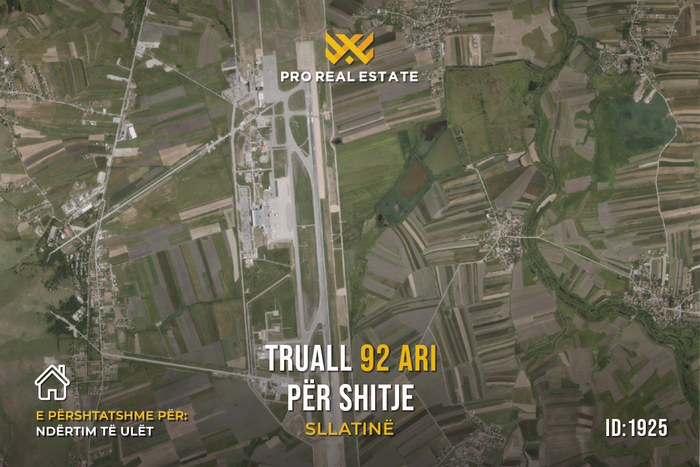 Zum Verkauf steht ein Grundstück in Sllatina, in der Nähe des internationalen Flughafens Pristina „Adem Jashari“.