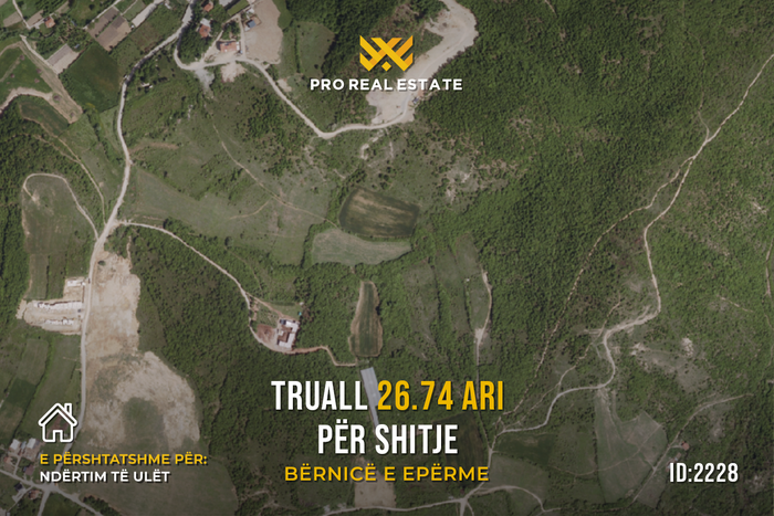 Zum Verkauf steht ein Grundstück mit einer Fläche von 26,74 Ar, gelegen in Bërnicë të Epërme, in der Nähe des Restaurants „Magra Austria“.