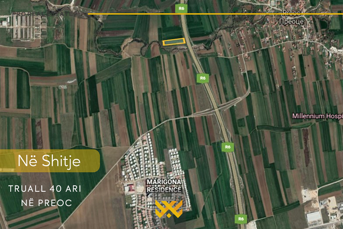 Zum Verkauf steht ein Grundstück mit einer Fläche von 40 Ar, gelegen in Preoc, nahe dem Viertel „Marigona Residence“.