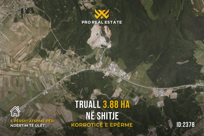 Zum Verkauf steht ein Grundstück mit einer Fläche von 3,88 Ha, gelegen in Korroticë të Epërme, Gemeinde Drenas, in der Nähe des "Business Parks".