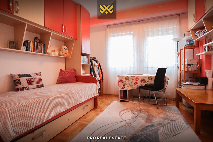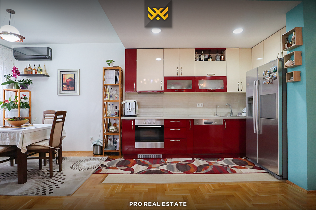Banesa ka këtë renditje: qëndrim ditor, kuzhinë, tri dhoma të gjumit, një banjo, një tualet dhe dy ballkona.