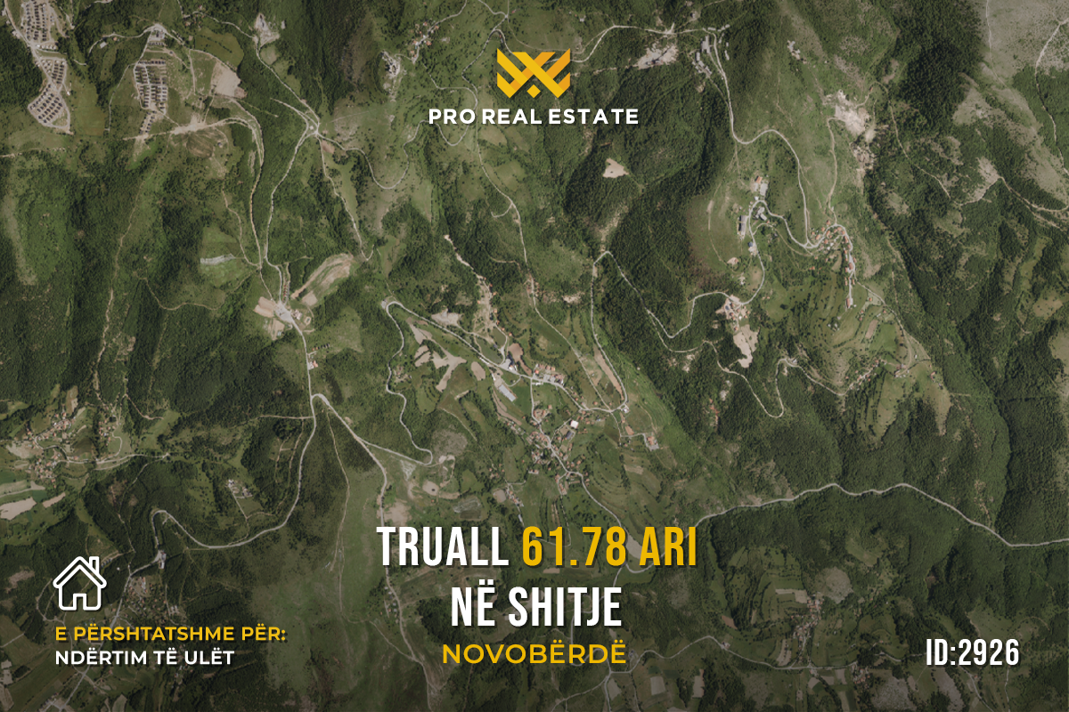 Das Grundstück mit einer Fläche von 61,78 Ar befindet sich in Novobërdë. Es ist mit einem Besitzschein ausgestattet und hat eine Baugenehmigung. Es hat Zugang zur Straße und verfügt über eine vollständige Infrastruktur. Der Preis beträgt 3500€ pro Ar.