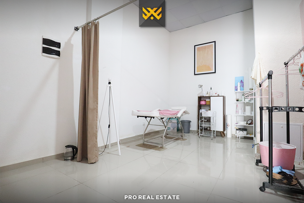 Es ist vollständig funktional und verfügt über zwei nutzbare Arbeitsräume, mit der Möglichkeit, die Räume nach den Wünschen der Kunden zu gestalten, sowie über eine Toilette.