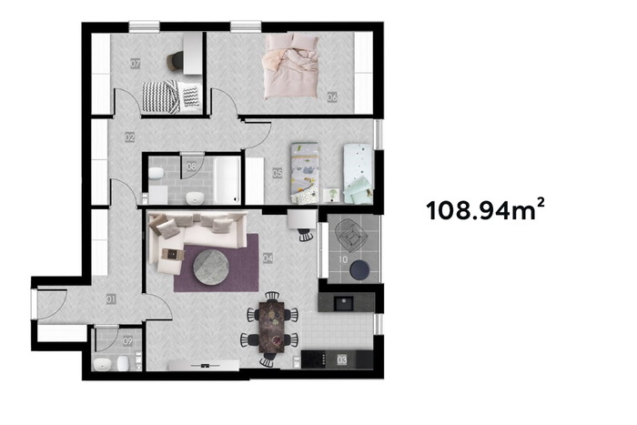 Die Wohnungen mit unterschiedlichen Flächen befinden sich in Prishtina e Re, in der Straße „Holger Petersen“, gebaut von Condor SH.P.K., im Komplex Dora, mit einer Entfernung von 450 m zum QKUK-Krankenhaus, 250 m zum Albi Mall und 600 m zum Grundgericht von Pristina. Der Komplex Dora bietet einen hohen und besonderen Komfort in Bezug auf den Komfort und die Ruhe Ihrer Familie. In Lamela C befinden sich drei verschiedene Wohnungen mit unterschiedlichen Flächen, beginnend mit der Wohnung mit einer Fläche von 109,95 m², die wie folgt angeordnet ist: Wohnzimmer zusammen mit Küche und Essbereich, drei Schlafzimmer, ein Badezimmer, eine Toilette und ein Balkon, die Wohnung mit einer Fläche von 108,94 m² mit Wohnzimmer zusammen mit Küche und Essbereich, drei Schlafzimmer, ein Badezimmer, eine Toilette und ein Balkon, und schließlich die Wohnung mit einer Fläche von 113,57 m², die folgende Anordnung hat: Wohnzimmer, Küche und Essbereich, drei Schlafzimmer, ein Badezimmer, eine Toilette und einen Balkon. Alle drei haben ein elektrisches Heizsystem und werden im Jahr 2022 vollständig fertiggestellt sein.