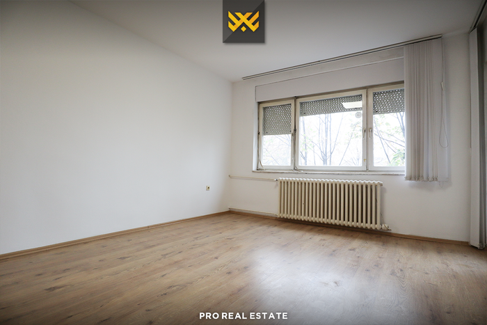Die Wohnung verfügt über drei große Räume, die sowohl für Wohnzwecke als auch für Büros geeignet sind.