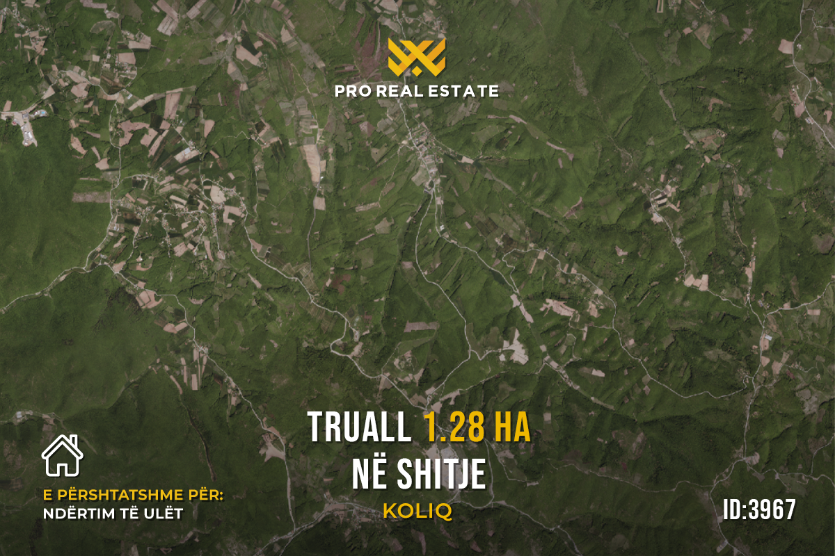Es wird ein Grundstück mit einer Fläche von 1,28 Ha in Koliq zum Verkauf angeboten, ausgestattet mit einem Besitzschein.