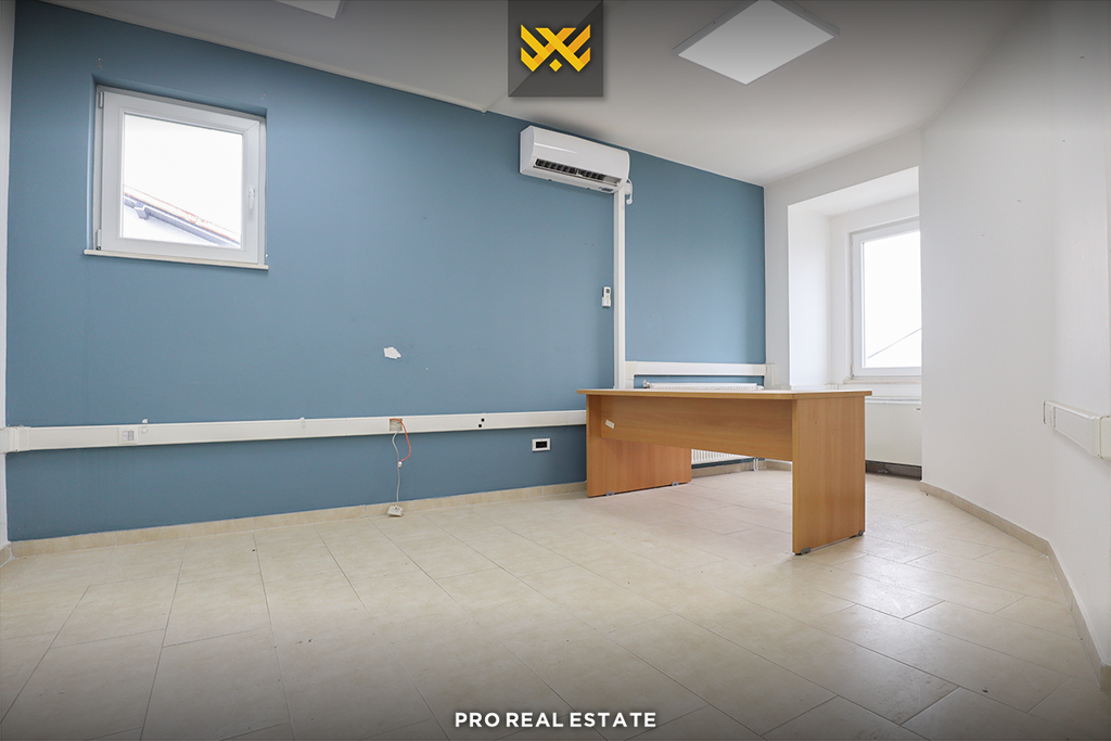Es ist in drei Etagen unterteilt und hat folgende Anordnung: 14 Büroräume, ein Badezimmer, eine Toilette und einen Balkon.