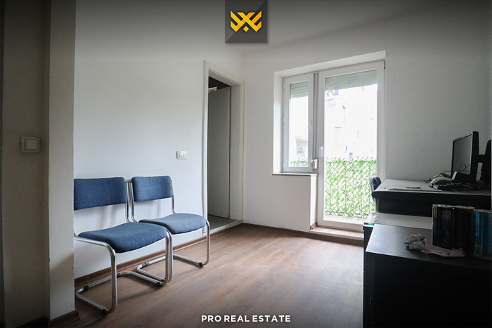 Die Wohnung ist vollständig funktional und verfügt über zwei Arbeitsräume, ein Badezimmer und einen Balkon.
