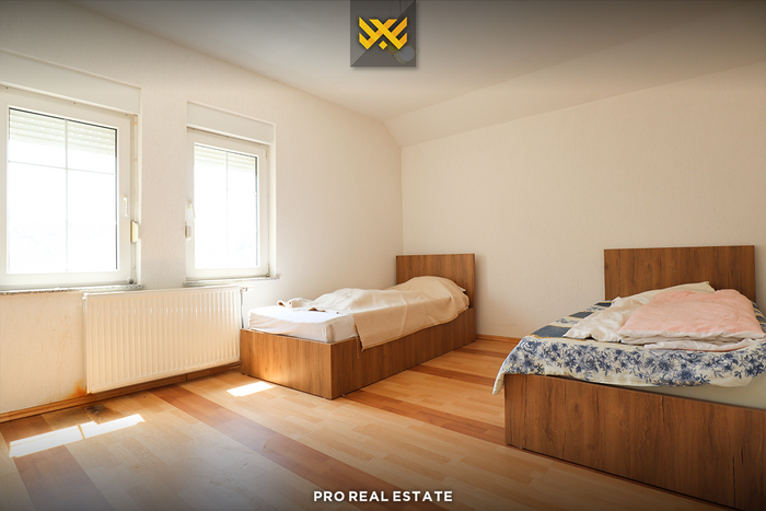 Das Haus hat einen Garten mit einer Fläche von 4 Ar und eine sehr geeignete Lage zum Wohnen, da es sich in einer ruhigen Gegend befindet, in der Nähe des Parks, der Schule und vieler anderer notwendiger Dienstleistungen.