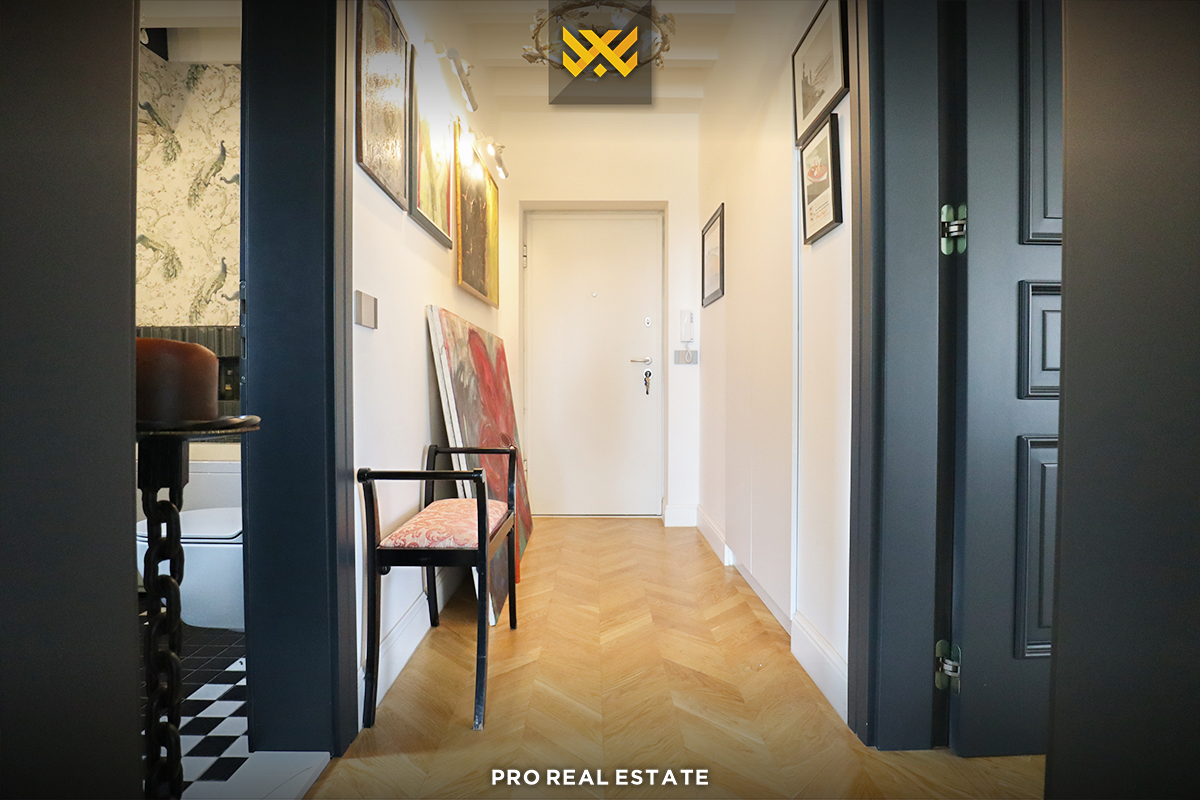 Die Wohnung hat eine Ost-Ausrichtung mit folgender Raumaufteilung: Wohnzimmer, Küche, zwei Schlafzimmer und Badezimmer. Sie verfügt über einen sehr besonderen Innenstil, mit hochwertigen Möbeln und einer sehr angenehmen Wohnatmosphäre.