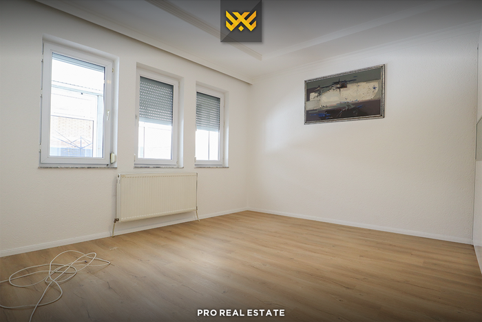 Es ist auf drei Etagen aufgeteilt, im Untergeschoss gibt es drei Räume, ein Wohnzimmer mit Küche und ein Badezimmer, im Erdgeschoss gibt es drei Zimmer, ein Wohnzimmer mit Küche und ein Badezimmer.