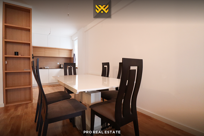 Die Wohnung hat eine Ausrichtung nach Südosten und folgende Anordnung der Innenräume: Wohnzimmer, Küche, zwei Schlafzimmer, Badezimmer, Toilette und Balkon. Die Wohnung ist vollständig möbliert und hat einen komfortablen Innenraum.