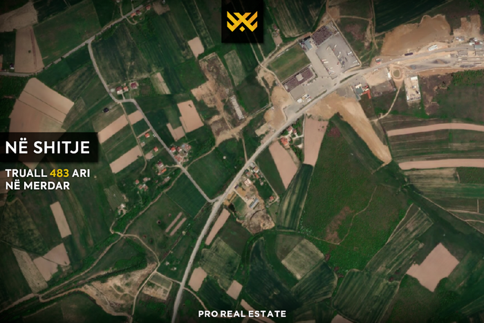 Es wird ein Grundstück mit einer Fläche von 483 Ar zum Verkauf angeboten, gelegen in Merdar, Podujevë, nahe der Grenze und dem Zollterminal DIANA SHPK.