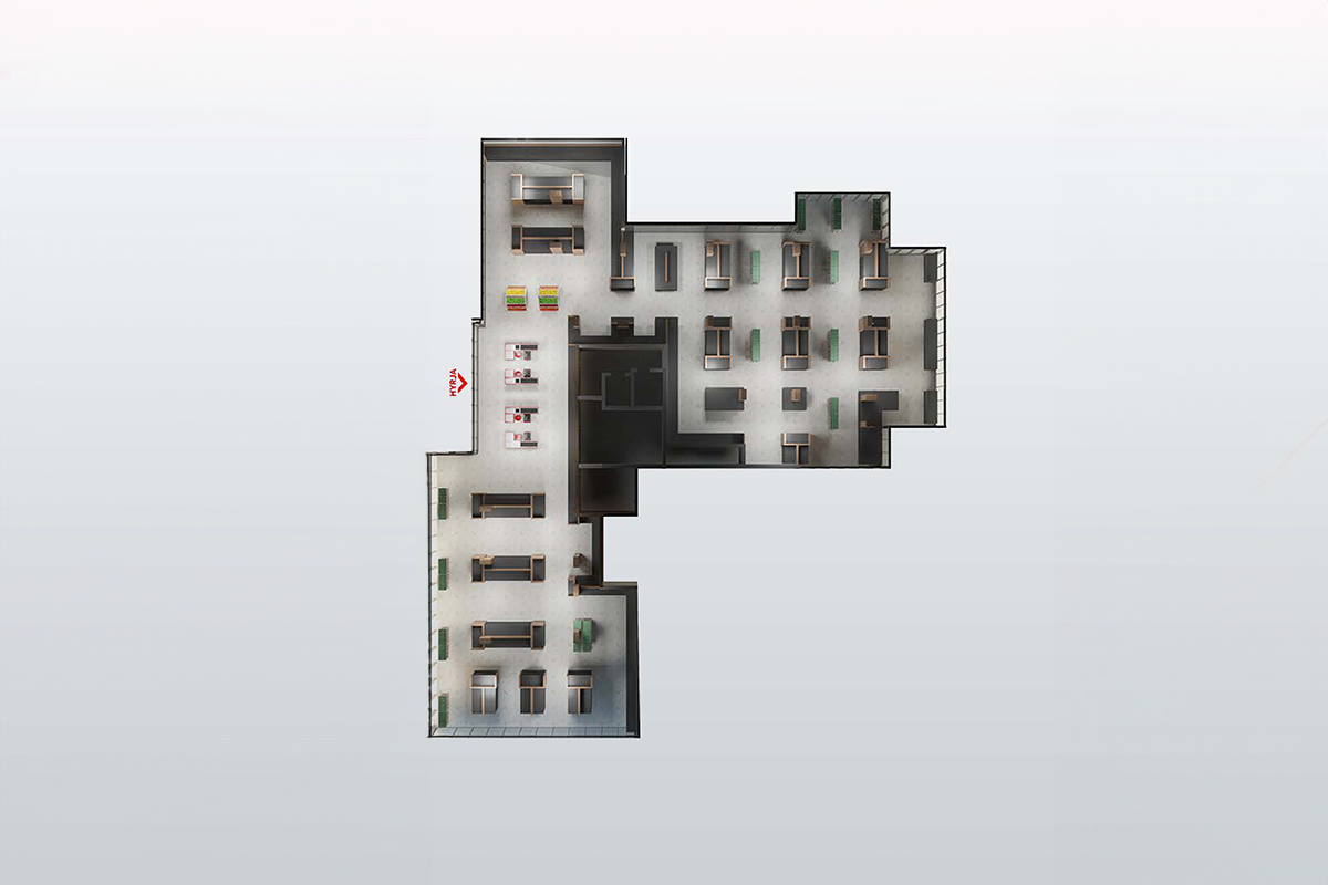 Das Lokal hat eine Ausrichtung nach Osten und Westen, befindet sich im Erdgeschoss und verfügt über einen offenen Arbeitsbereich und eine Toilette.