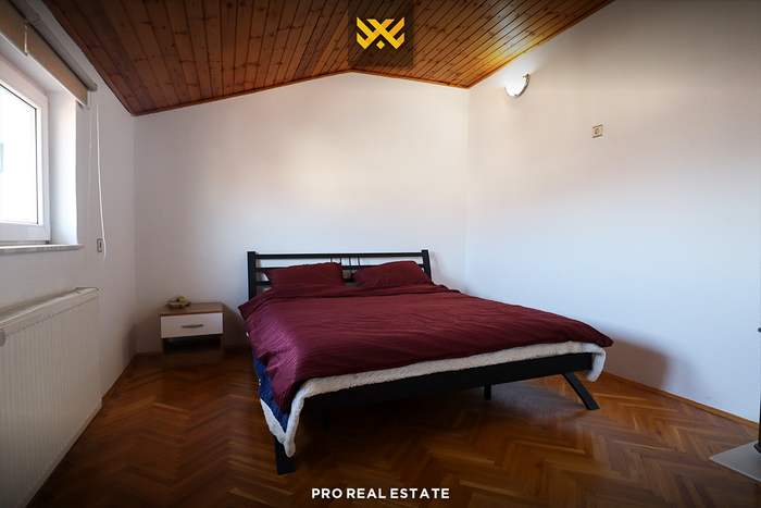 Das Haus befindet sich auf einem Grundstück von 10 Ar, wo auch Platz für 10 Autos und eine Garage vorhanden ist.