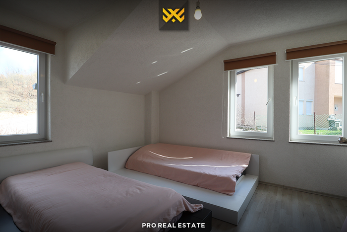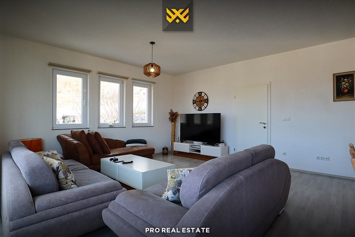 Das Grundstück hat eine Fläche von 5 Ar, es gibt eine Garage und ausreichend Parkplätze.