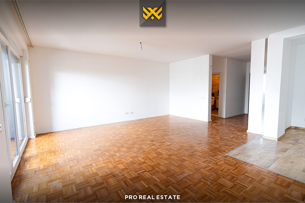 Die Wohnung hat eine Westausrichtung und folgende Raumaufteilung: Wohnzimmer, Küche, zwei Schlafzimmer, zwei Badezimmer, ein Abstellraum und drei Balkone.