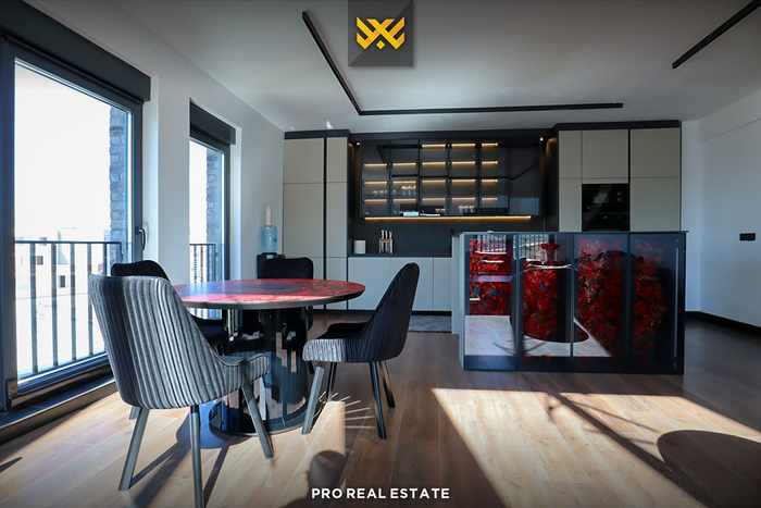 Eine Penthouse-/Duplexwohnung mit einer Wohnfläche von 250 m² und einer Terrasse von 70 m² wird zur Miete angeboten, gelegen in Prishtina e Re, im Park Residence-Komplex, gebaut von der Berisha Group.