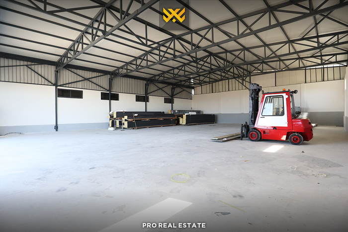 Das Lager erfüllt alle Anforderungen für eine vollständige Infrastruktur, Zugang zur Straße, Stromanschluss, Abwasser und Wasseranschluss.