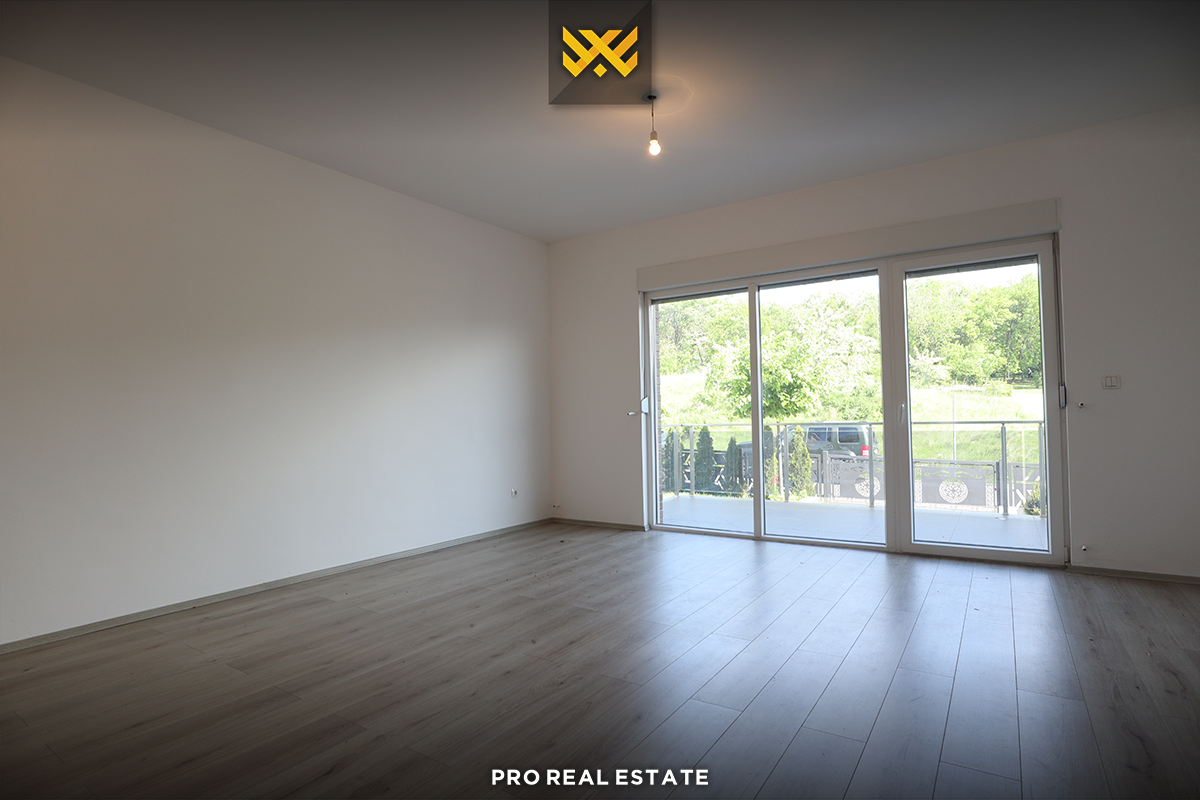 Im Erdgeschoss gibt es ein Wohnzimmer, eine Küche, ein WC und einen Balkon;
