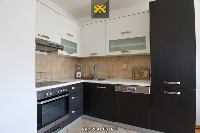 Die Wohnung hat eine gute Ausrichtung nach Westen und Norden mit folgender Anordnung der Innenräume: Wohnzimmer, Küche, zwei Schlafzimmer und Badezimmer. Alle Innenräume sind möbliert und funktional.