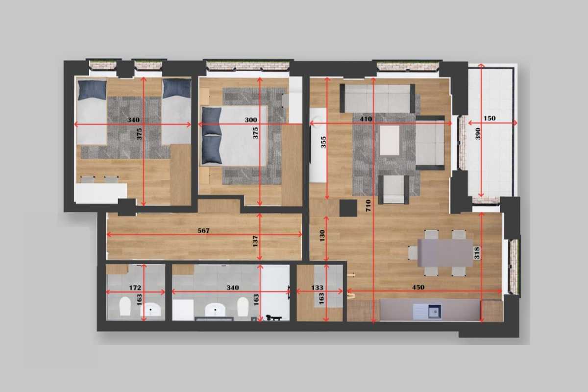 Zum Verkauf steht eine Wohnung mit einer Fläche von 93,2 m² in Veternik, nahe Albi Mall, im Joni Premium-Komplex, gebaut von Ariani Home.