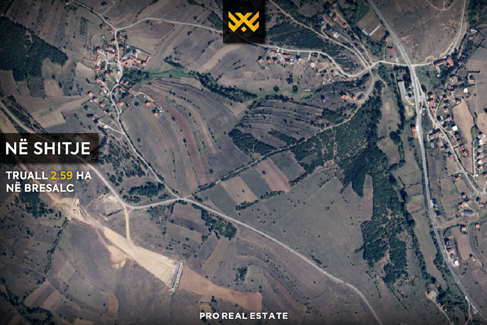 Zum Verkauf steht ein Grundstück mit einer Fläche von 2,59 Ha, gelegen im Dorf Bresalc, Gjilan.