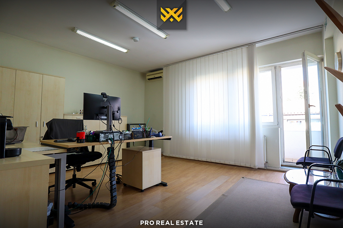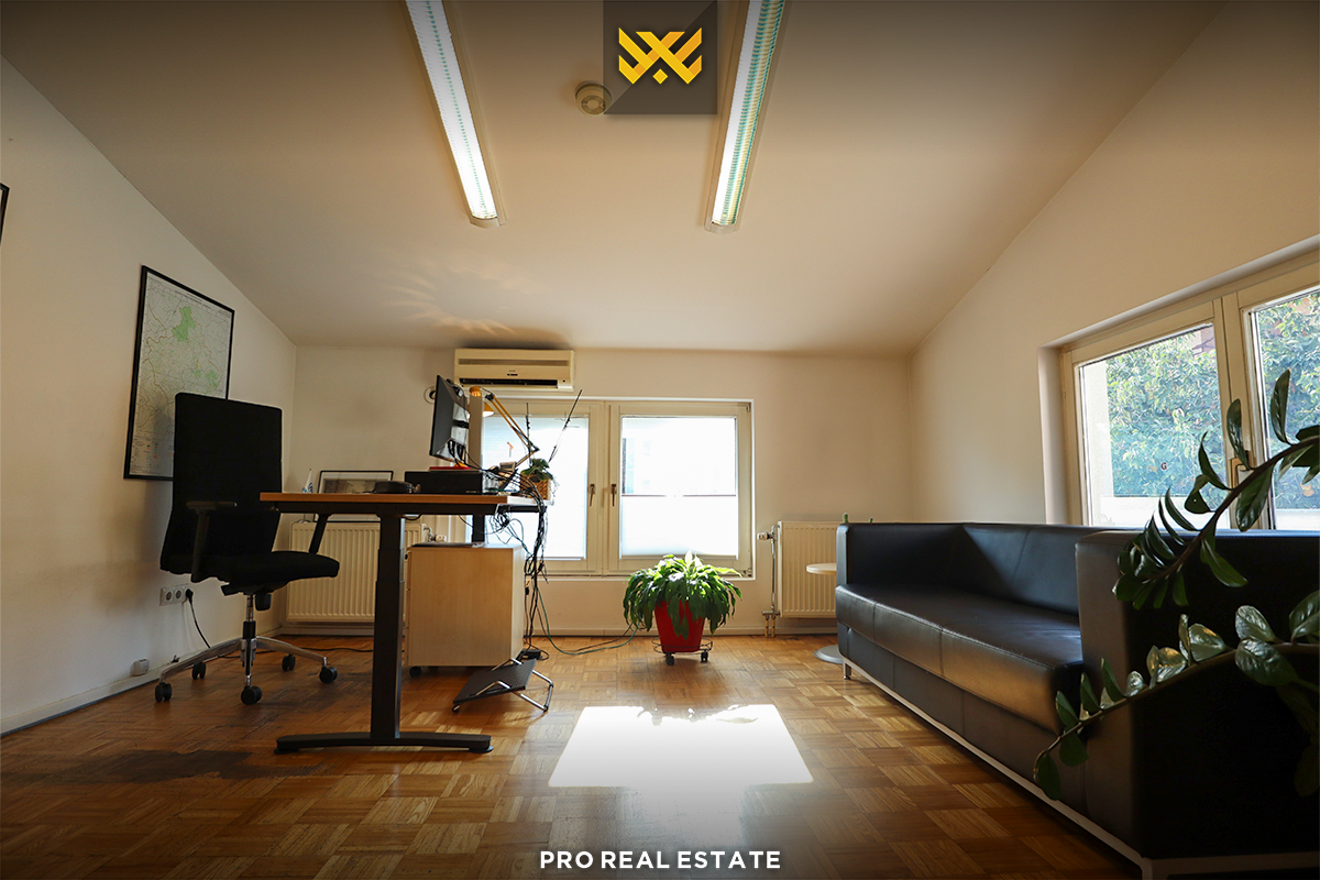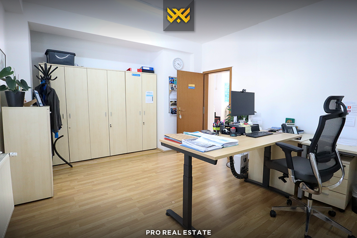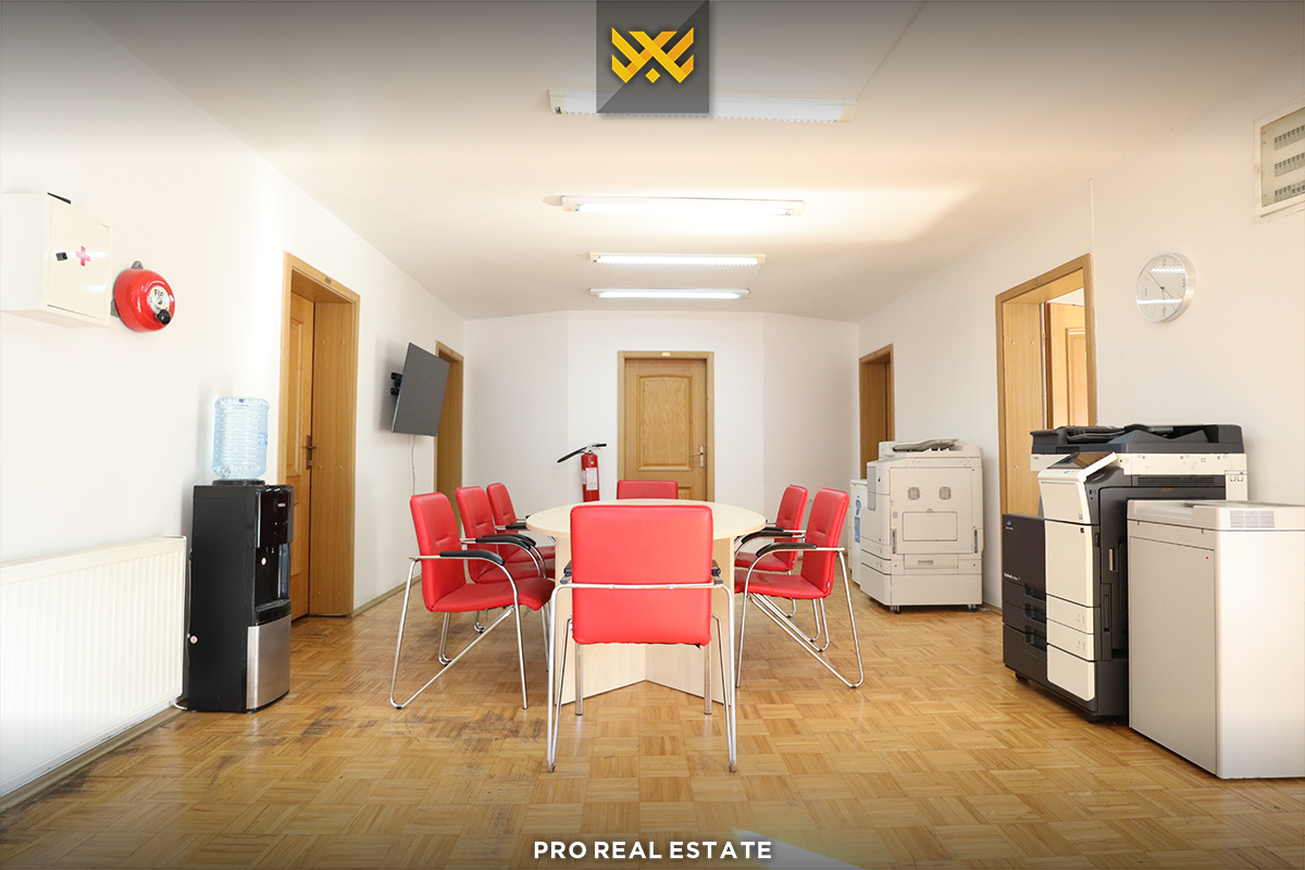 Ein Haus im Erdgeschoss hat drei Büroräume, eine Küche, zwei Toiletten, ein Lager sowie einen Konferenzraum, während im ersten Stock drei Büroräume, eine Toilette und ein Balkon vorhanden sind.