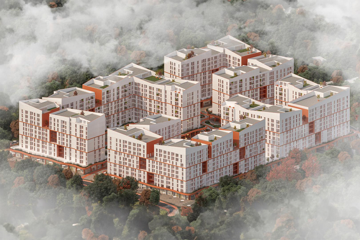 The complex is a new high-quality construction, divided into four blocks, with a construction area of 152,000m², 860 residential units, 1180 parking spaces, a commercial area of 13,000m², green spaces of 15,000m², and a total underground area of 31,000m².