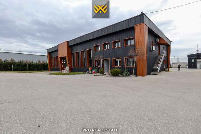 The property is structured on the ground floor and one upper floor, divided into a warehouse with an area of 1600m² and a functional office with an area of 200m².