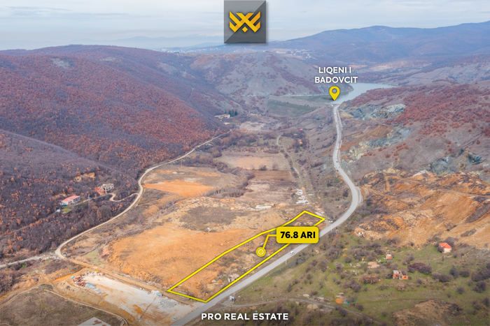 For sale is a plot of land with an area of 76.8 Ari, located in Graçanicë, near the Badovc Lake.