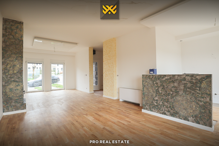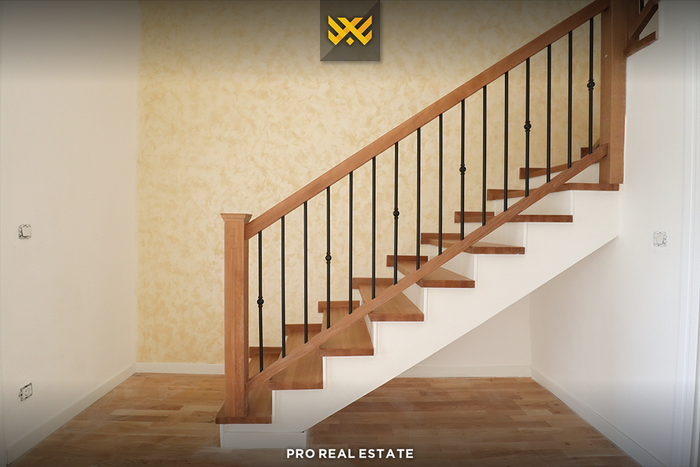 The house has an east and west orientation, structured on the ground floor and one upper floor, fully functional with the following layout of internal spaces: living room, kitchen with dining area, four bedrooms, three bathrooms, one toilet, and a balcony.