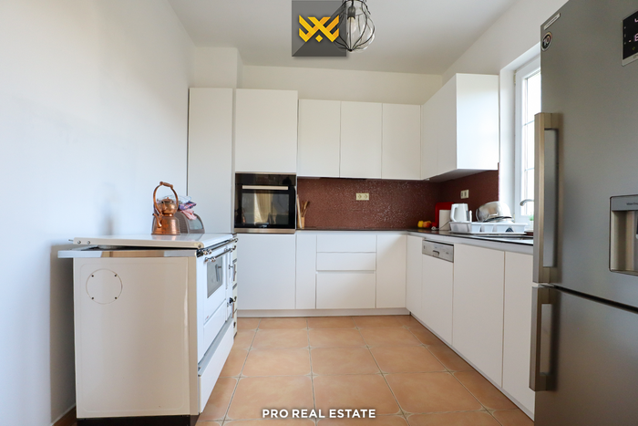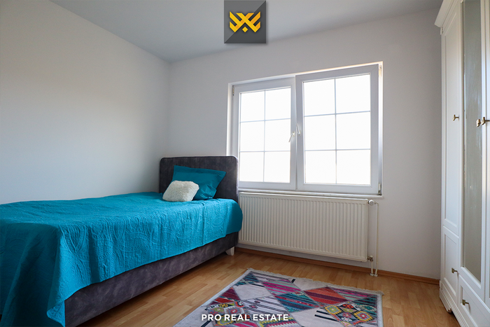 The house is oriented from all sides, structured on the ground floor and one upper floor, with the following arrangement of interior spaces: living room, kitchen with dining area, three bedrooms, two bathrooms, storage, and balcony.
