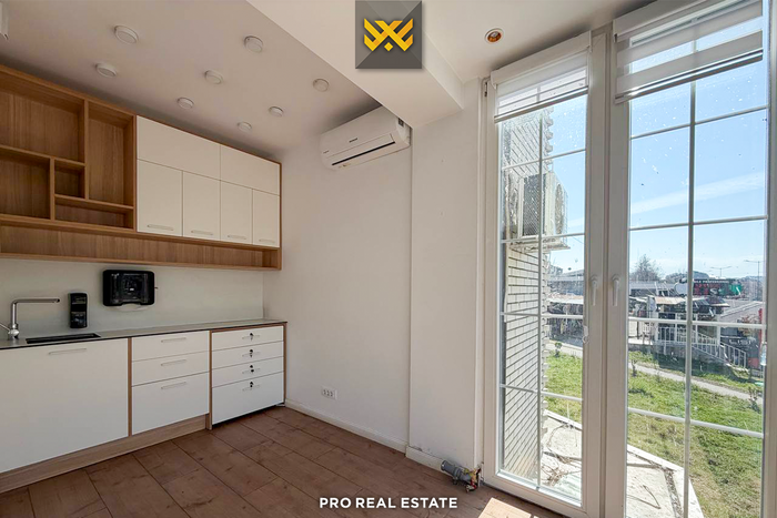 The apartment has an east and south orientation and has the following layout of internal spaces: seven workspaces, kitchen, and bathroom.