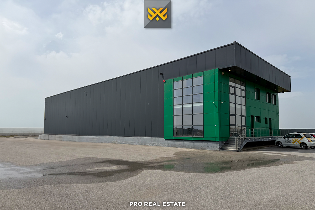 The warehouse has a large functional space, three offices, a kitchen, and 2 bathrooms, while the heating system is provided by a heat pump and it is equipped with air conditioning.