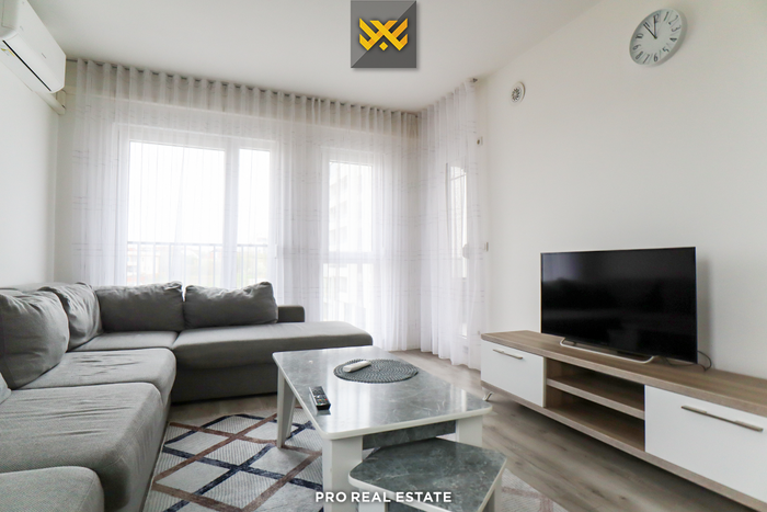 The apartment has an eastern and northern orientation and has the following layout of internal spaces: living room, kitchen, two bedrooms, one bathroom, one toilet, storage, and a balcony.